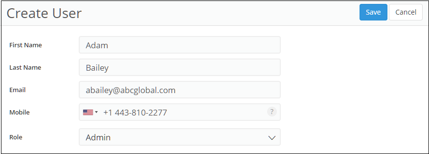 6. Enter his mobile number in Mobile text box. If your team number is based in some other country, you can change the country code by clicking on the drop-down and choosing the desired one