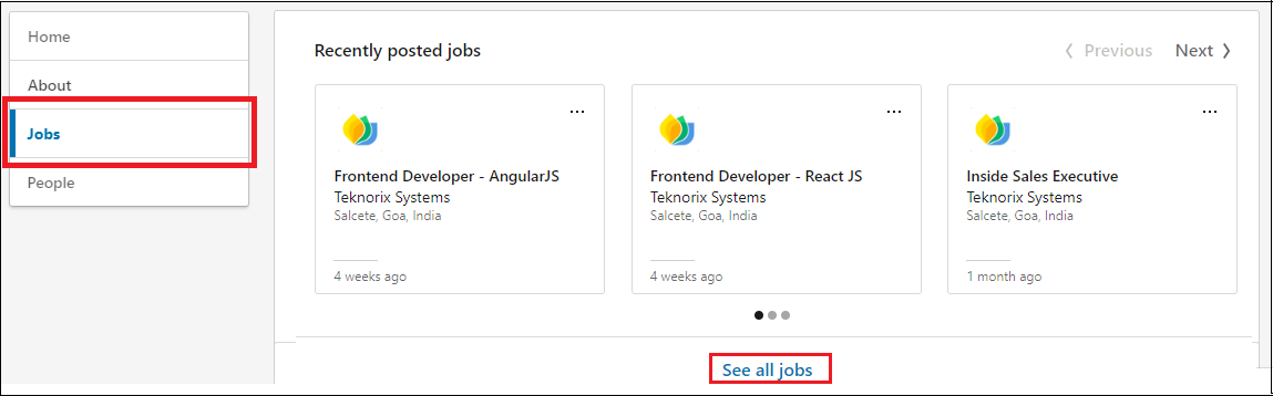 If you are not able to view the 'See Jobs' button, go to the Jobs tab on your page and click on See all jobs.