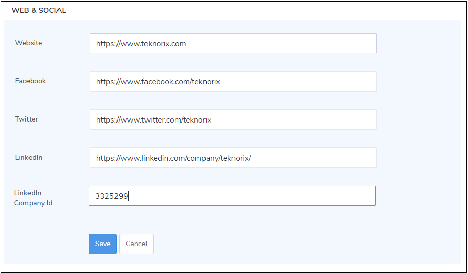 2. Now go to Web and Social section and fill in the following details: