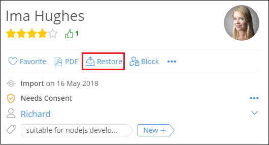 4. A dialog box asking you whether you are sure about restoring the candidate profile will appear. Click on Restore button.