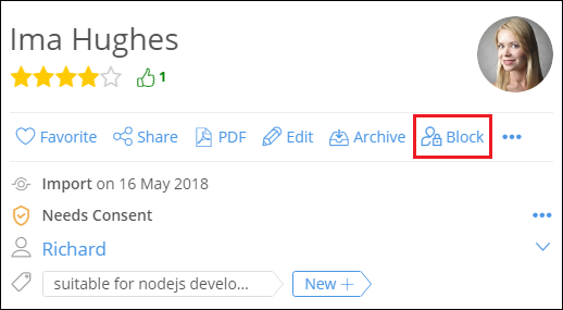 3. Now, click on Block. A message box asking you whether you wish to go further with blocking the candidate will be shown to you