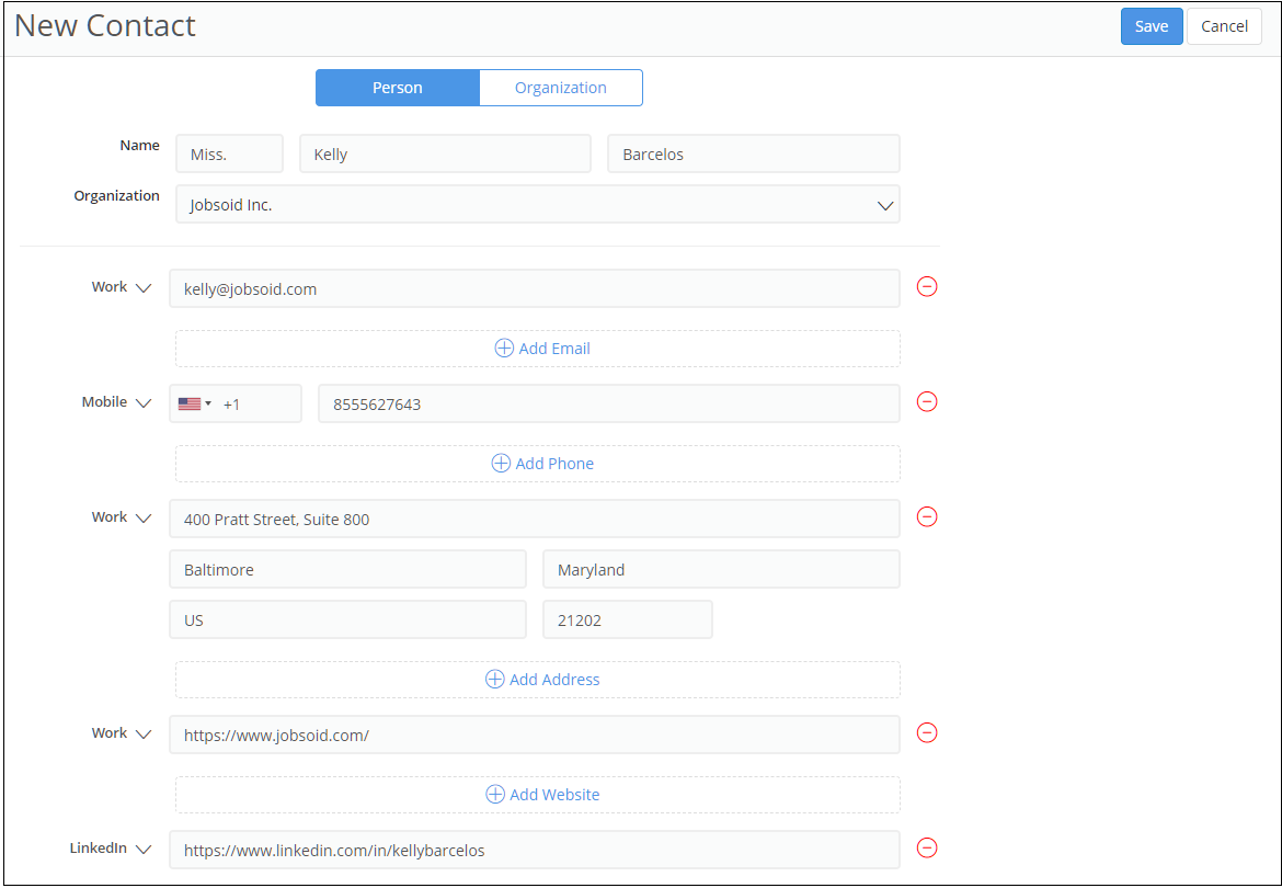 Contacts are basically your clients. A contact could be a person or a company you are or were working with. Jobsoid allows you to save all your client details in your ATS.
