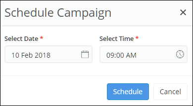 9. You can also choose to send out your message at a specific time. Click on Schedule button to do so. This will open Schedule Campaign window