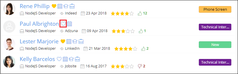 1. You can also mark a Candidate as Favorite directly from the Candidate list page
