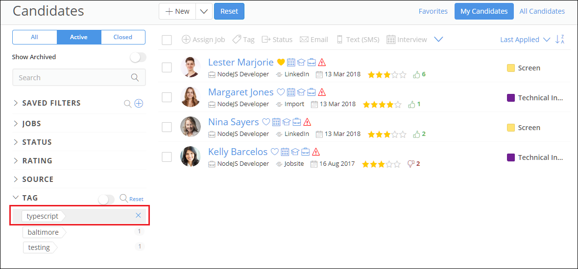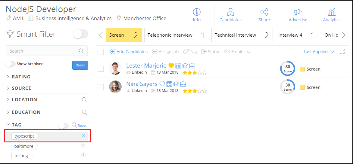 3. Choose the Tag on which you want to filter the candidates. The results will be displayed based upon the Tag(s) you have selected