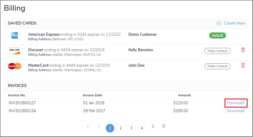 Your saved credit card will be billed at the beginning of every billing cycle. So if you are on a monthly subscription, you will be billed on the date shown on your active subscription under My Subscriptions.