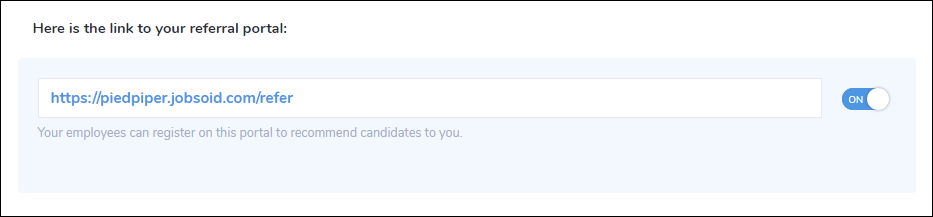 This is the link to your candidate referral portal. You can enable or disable your referral portal according to your requirements.