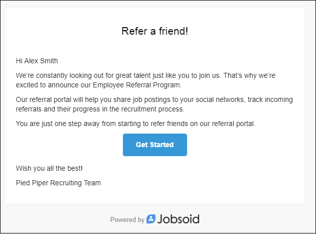Talent In Cloud will automatically send an email inviting the employee to register for the referral program.