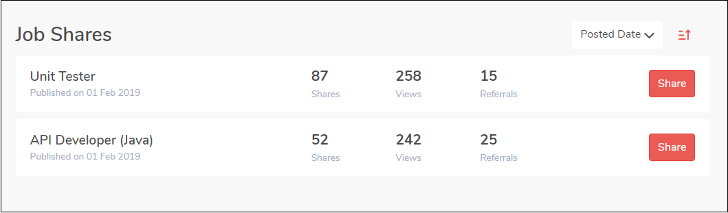 The Job Shares page gives you a list of available job openings. You can sort these jobs on the basis of their posted dates or names in ascending or descending order.
